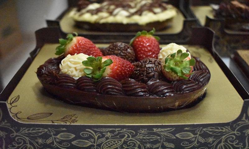Massa escura, creme de coco, creme de chocolate branco